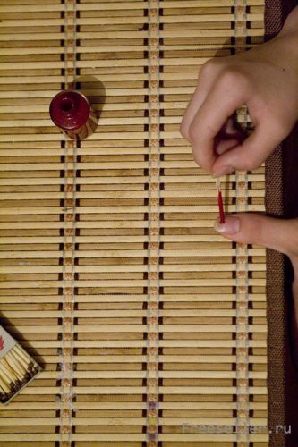 Капаем на ноготь капельку, проводим спичкой к кончику ногтя.