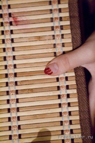Делаем так 3 "кровавых подтёка". Проводим линию на кончике ногтя.