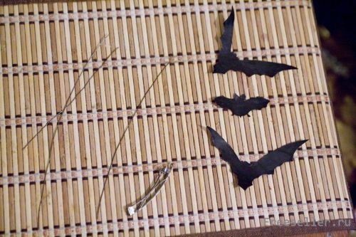 Вырезаем летучих мышей и раскрашиваем чёрным маркером.