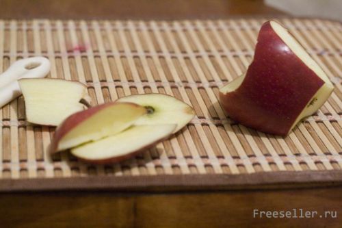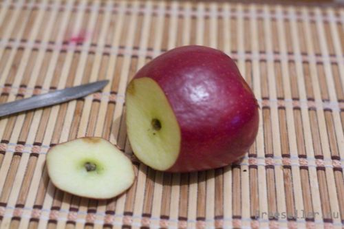 Отрезаем от яблока верх и низ.