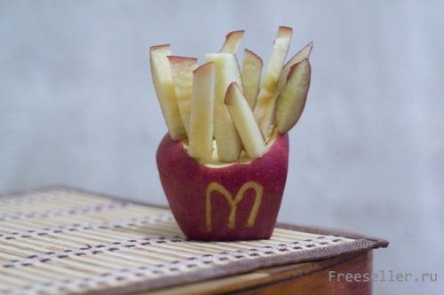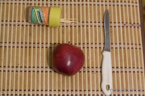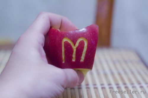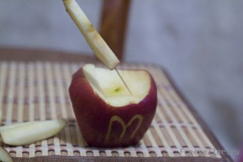 Вырезаем на яблоке логотип.