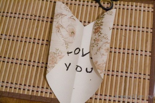 Сделайте своими любимым на 14 февраля необычный конвертик, развернув который, получатель подарка увидит сердце с признаниями в любви.