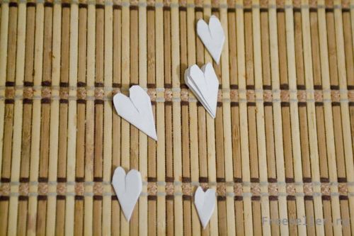 Склеиваем получившиеся лепестки в несколько слоёв острыми углами друг к другу.