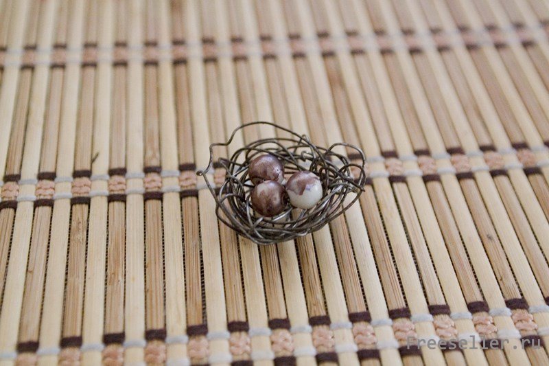Далее придаем гнёздышку более округлую форму. Продеваем в цепочку и готово!