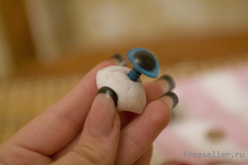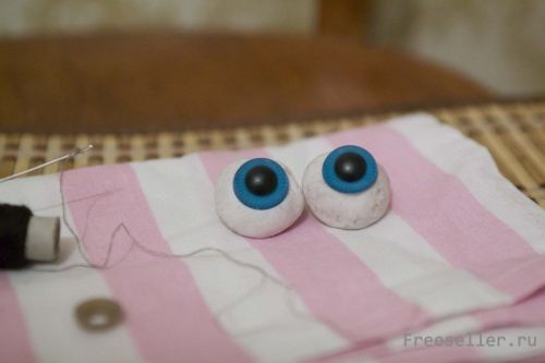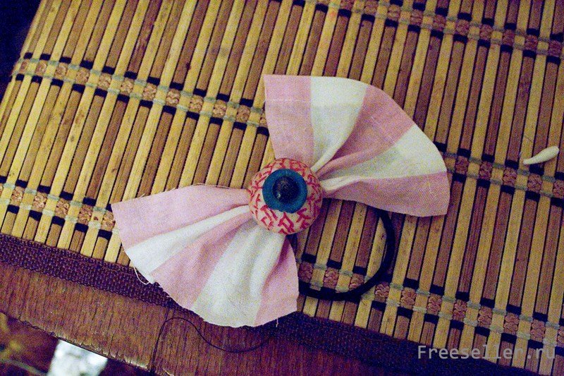 Пришиваем друг к другу глазик, бант и резинку. Готово!