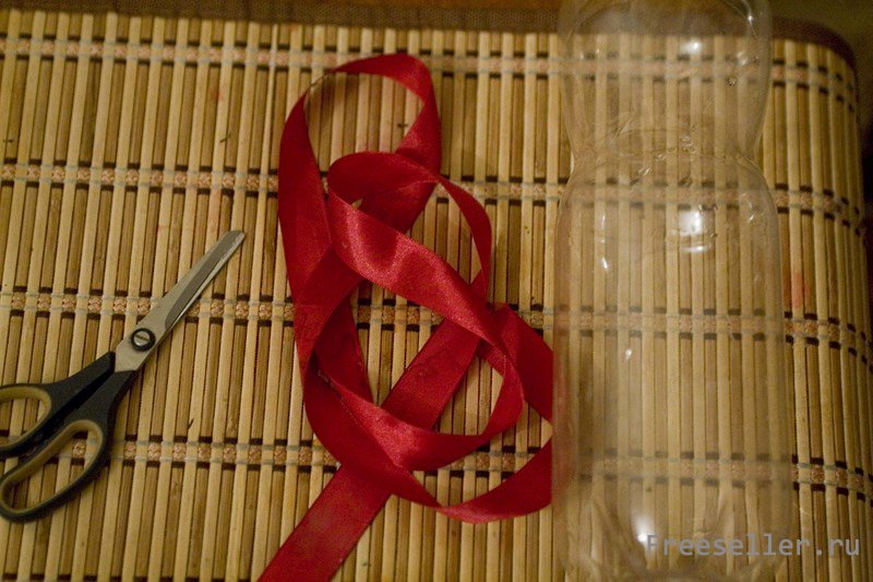 3) Атласную ленту можно закрепить с помощью клея, а можно подшить прямо к бутылке.