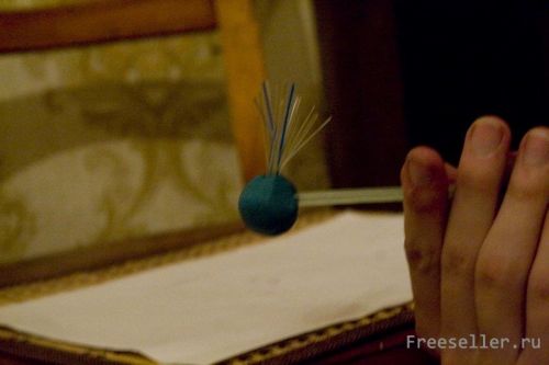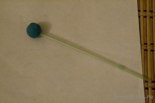 3) Раскатываем шарик из пластилина и нанизываем его на длинную трубочку.