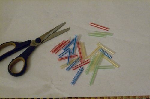 1) Разрезаем трубочки на одинаковые полоски около 5 см.