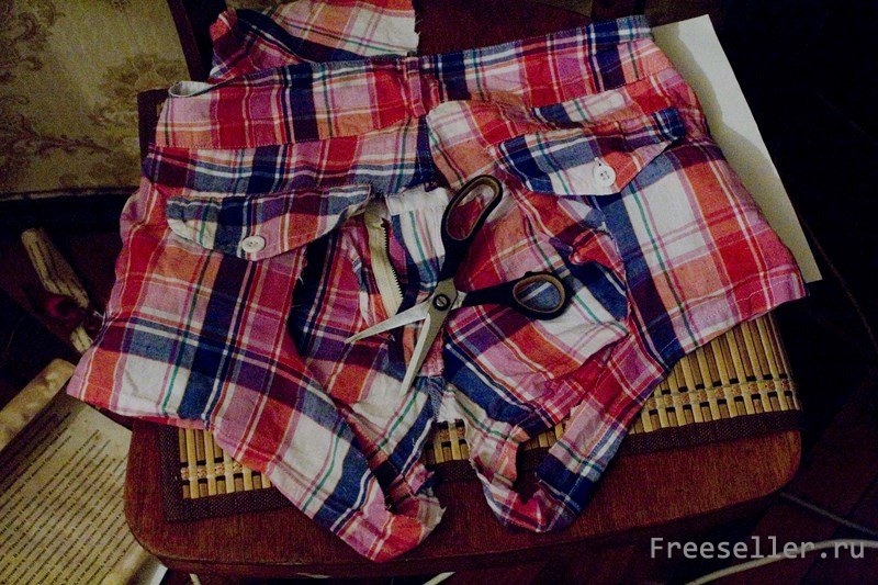 1) Разрезаем на том месте шорт, где должны быть ягодицы и в области паха окружность. Это будет горловиной.
