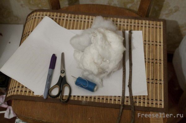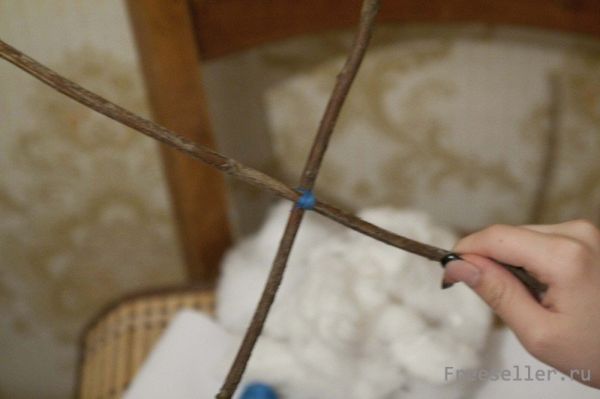 Для начала находим всё необходимое. Затем берем 2 веточки и нитки.