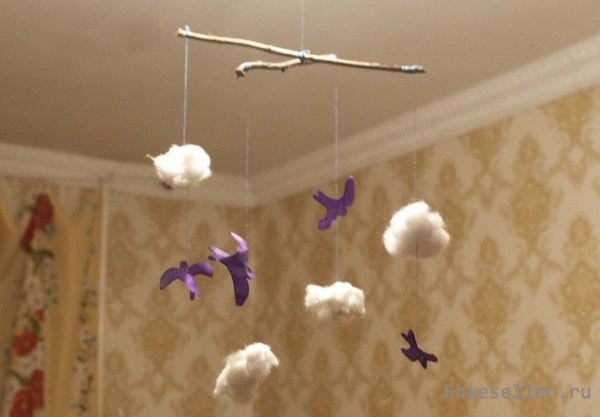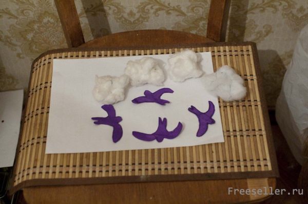 Как сделать самодельные "Ласточки в облаках". Неплохое интерьерное решение для детской.