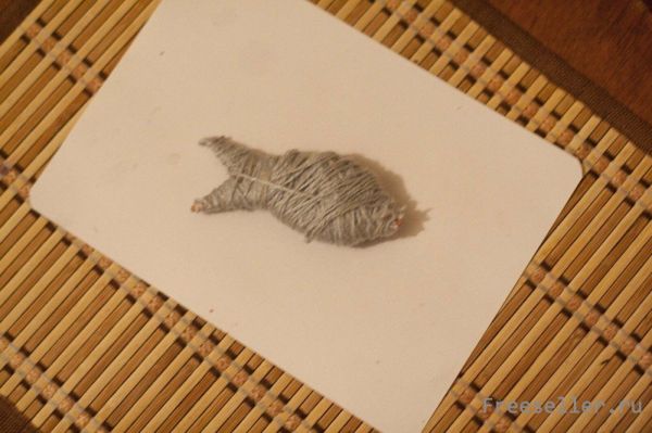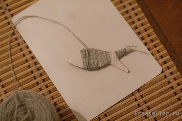 Затем начинаем плотно обматывать рыбку начиная с хвоста.