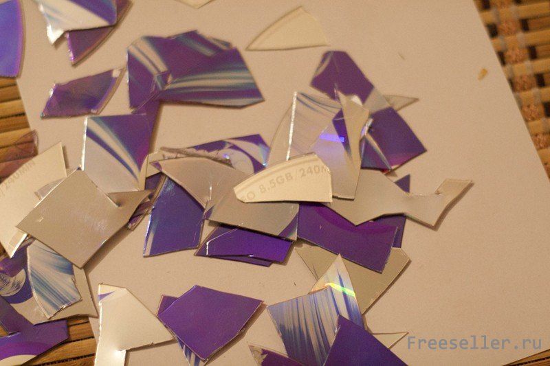 Берем CD или DVD диски и начинаем их ломать на мелки кусочки.