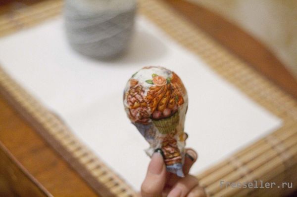 2) Начинаем обклеивать первым слоем салфетки. Не спешите! Салфетка очень хрупкая, когда влажная. Делайте всё очень аккуратно.