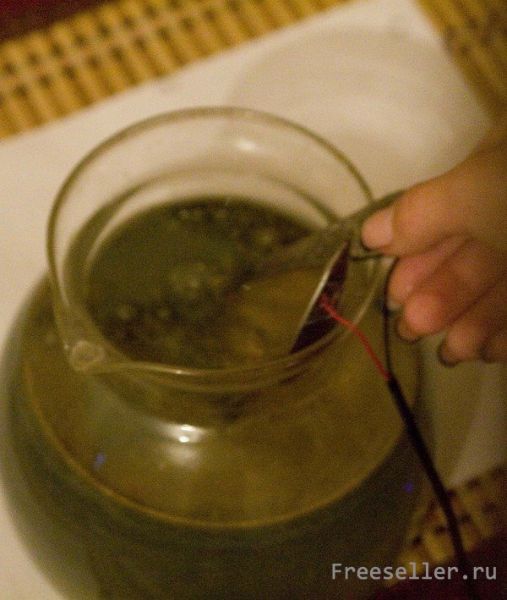 5) Включаем в сеть и ждем. Нужно примерно минут 20. Вода потемнеет и будет бурлить.