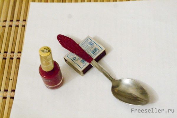 1) Берем нашу ложечку и покрываем её лаком с двух сторон ( как показано на картинке )