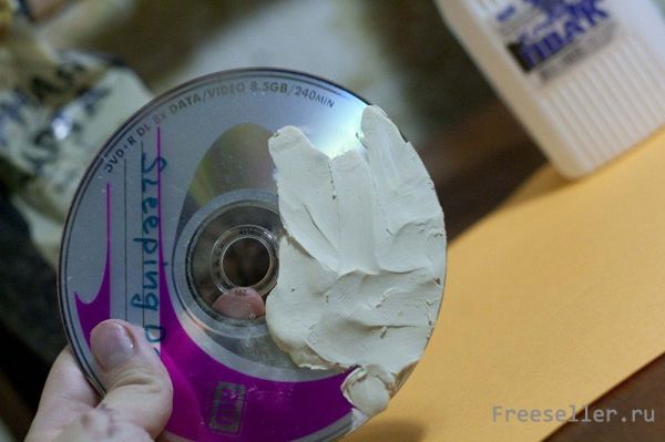 2) Когда закончим обмазывать пластилином, обклеиваем бумагой тыловую сторону диска.
