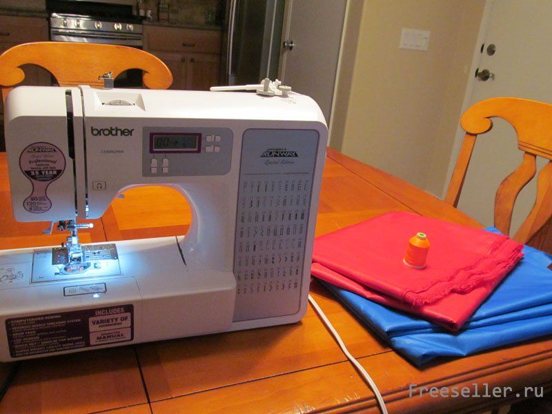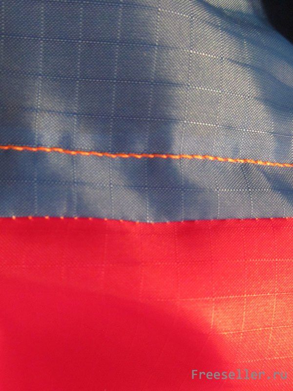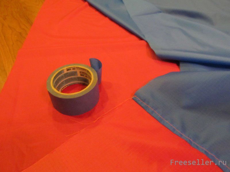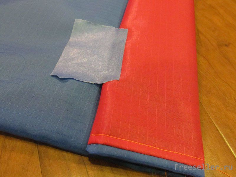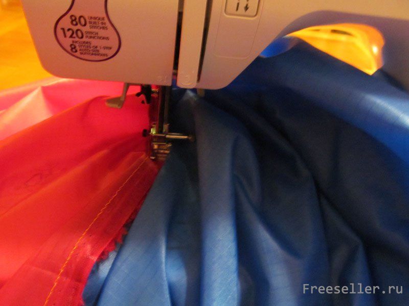 3) Совместить нейлоновые полотна обоих цветов и соединить их прямой строчкой по всей длине с одной и с другой стороны.