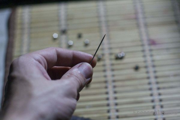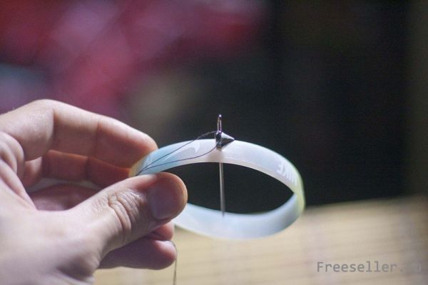 3) Пришиваем другие бусины так же на расстоянии 2-3 см.