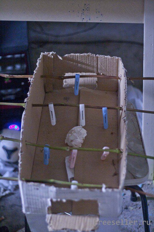 ![Самодельный настольный мини футбол из прищепок и коробки.]()