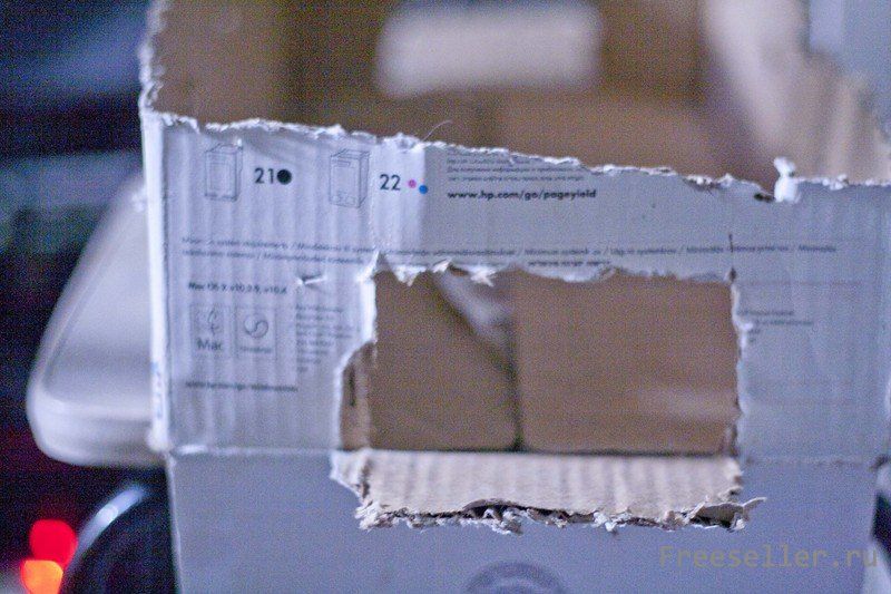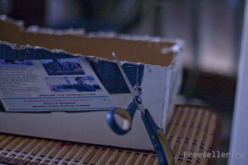 С тех сторон, где дырочки мы не проделывали, разрезаем такой прямоугольник. Это будут ворота: