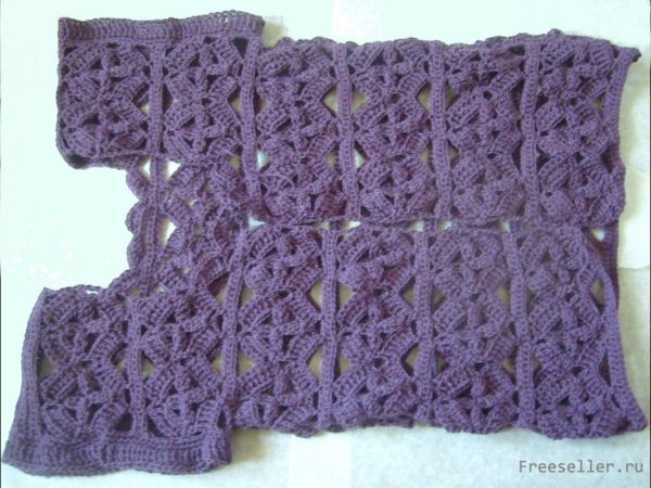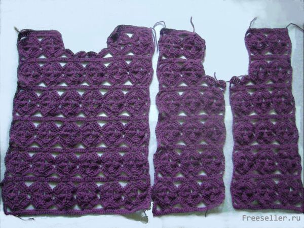 Выбрав узор, вяжем по отдельности детали будущего изделия - спинку и две полочки. Отпариваем их, придаём форму по выкройке.