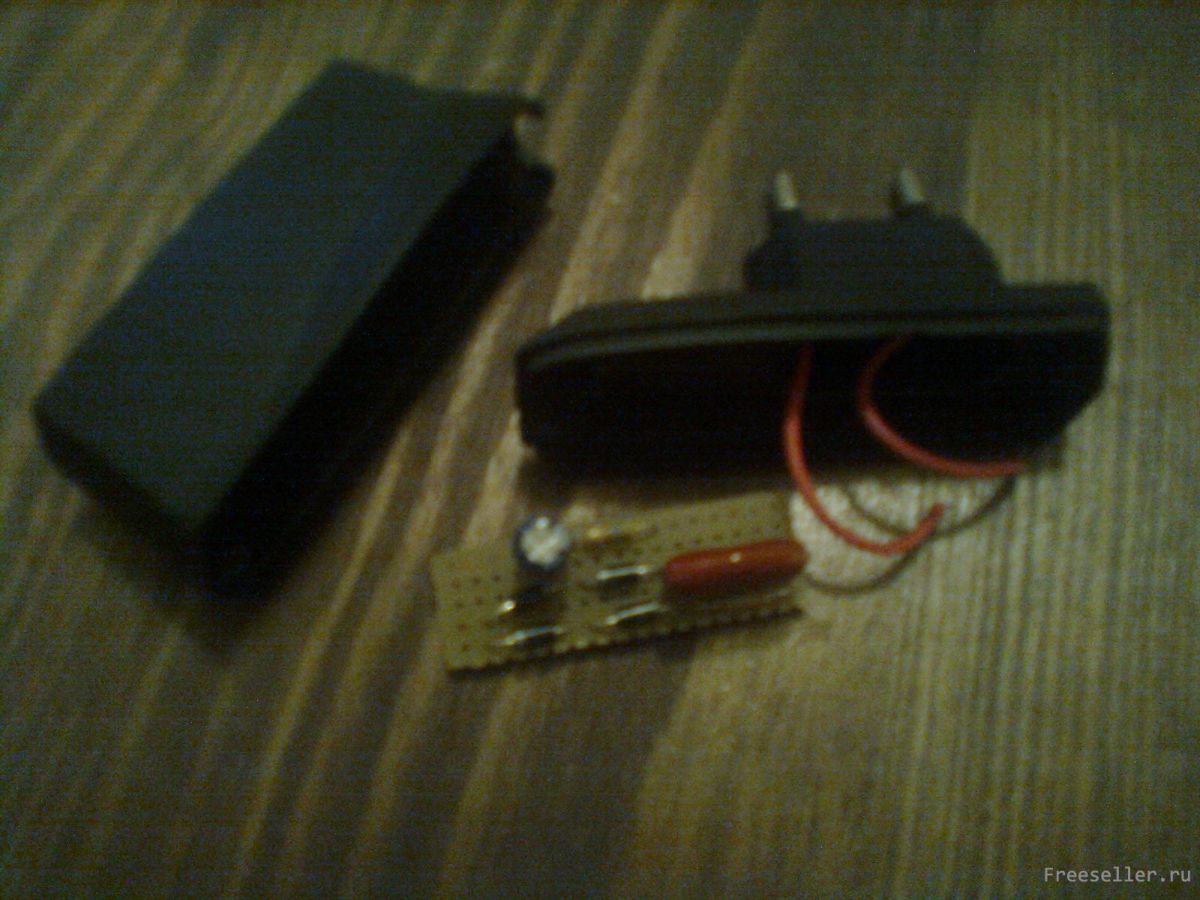 В корпусе зарядного устройства я вырезал, нагретым на плите ножом дырку. Дырка вырезается для того, чтобы вставить в нее ракушку. При установке она должна плотно заходить в отверстие.
