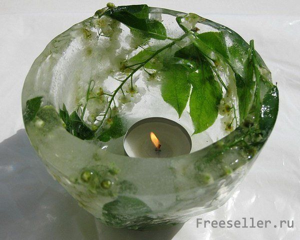 Светильник сохраняет запах цветов. Тает одновременно со свечкой.