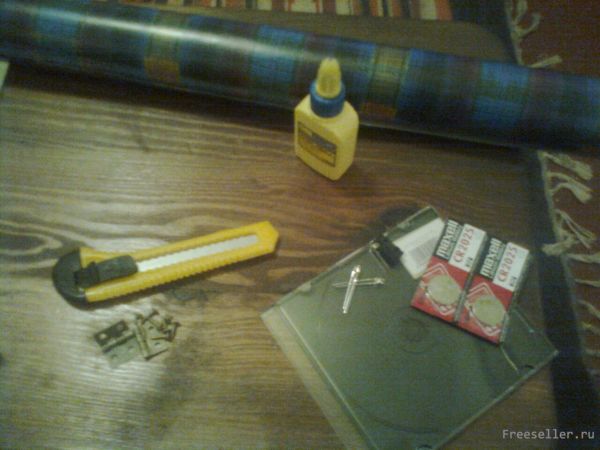 Берем крышку от коробочки CD и вырезаем прозрачный квадрат по размерам картинки.