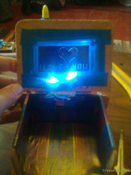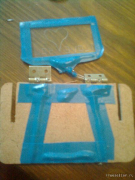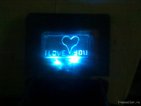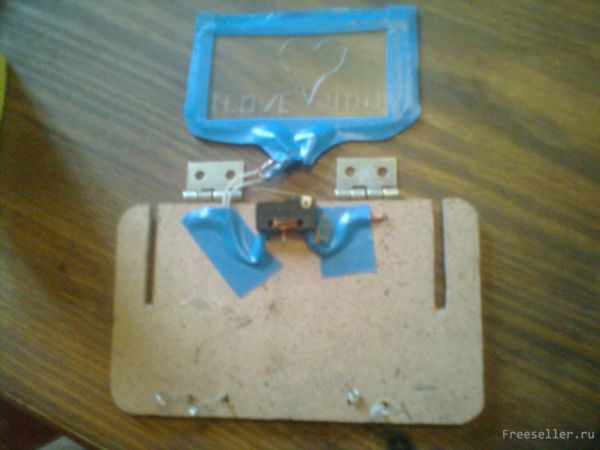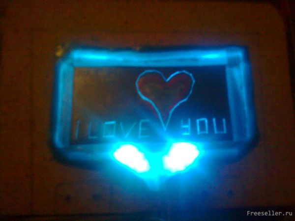 Прислоняем к картинке и по контурах царапаем подсвечивание картинки (можно просто на обычной картинке послать сердечко когда включается подсветка а так при свете для не видно)