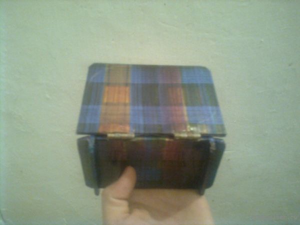 Каждая стенка оклеивается отдельно от всех (для этого шкатулку необходимо разобрать). Внутри клеил бумагой только нижнюю стенку.