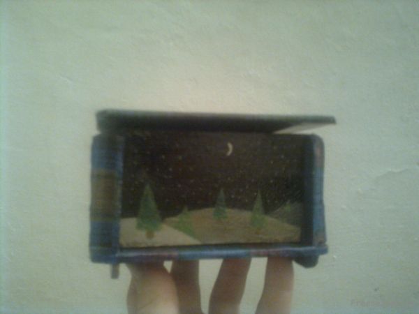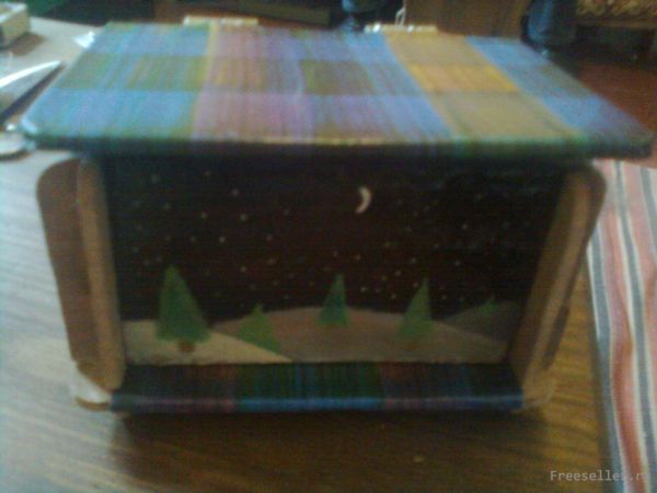 Также и переднюю стенку тоже можно заклеить бумагой, но я нарисовал рисунок простой гуашью и покрыл все лаком.