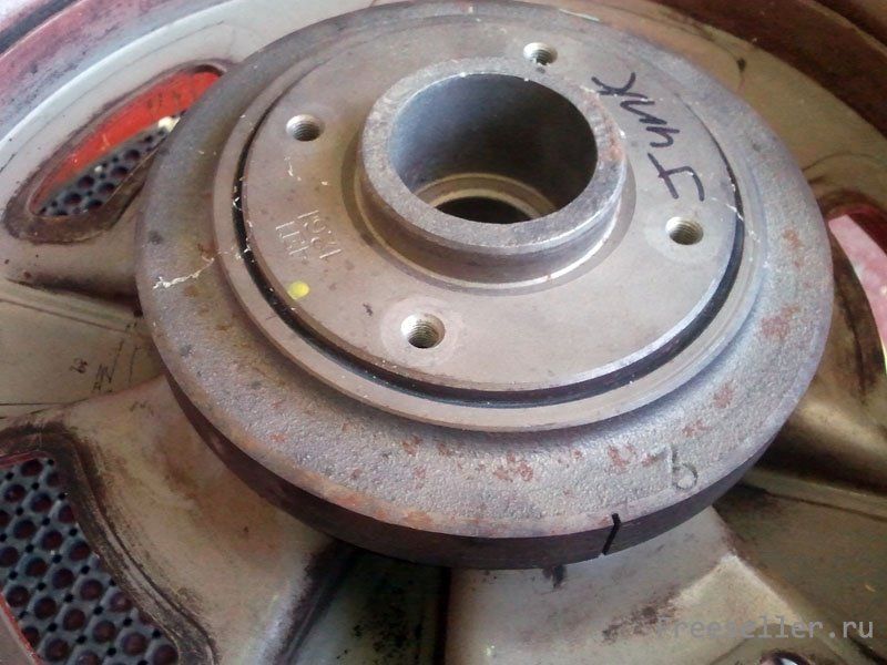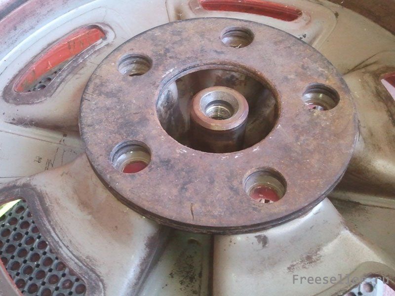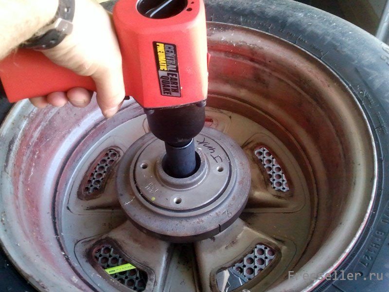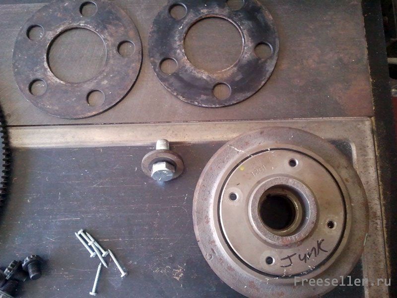 Теперь, когда запаска сбалансирована по центру, можно положить прокладку на верхнюю часть колеса. Затем сдвиньте демпфер колебаний и установите его на нужное место. Закрепите болты с помощью гайковерта.