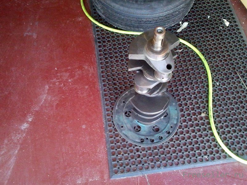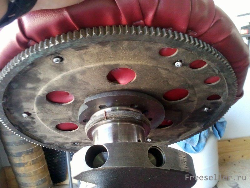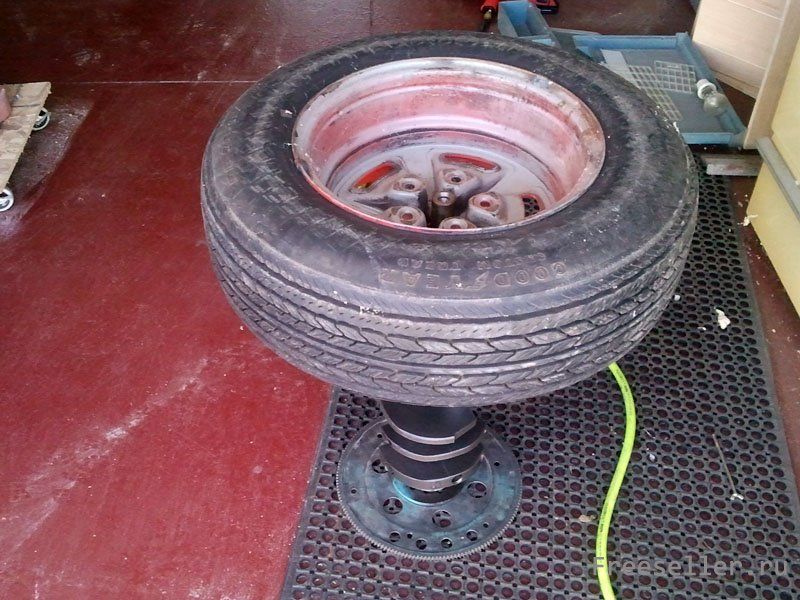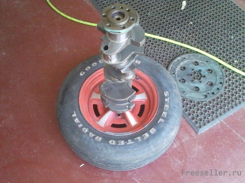 Необходимо сбалансировать коленчатый вал с помощью гибкой пластины у самого дна. Затем нужно поместить и сбалансировать запаску на верхней части коленчатого вала.