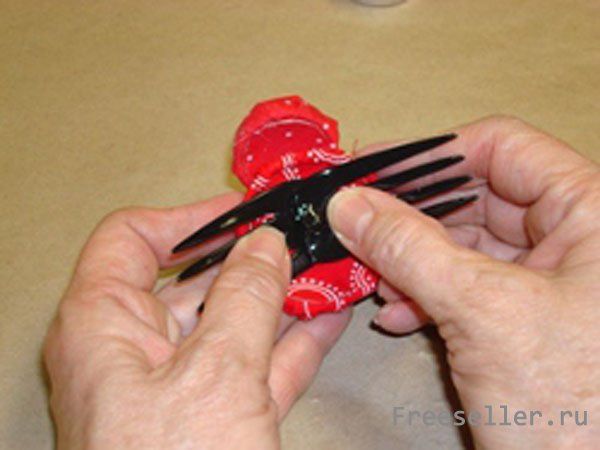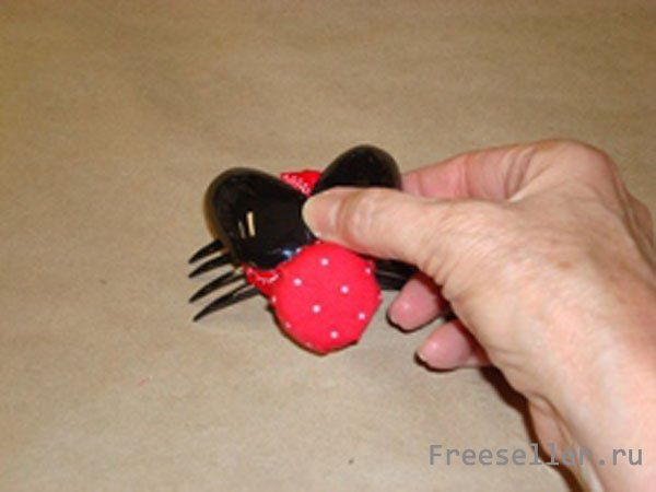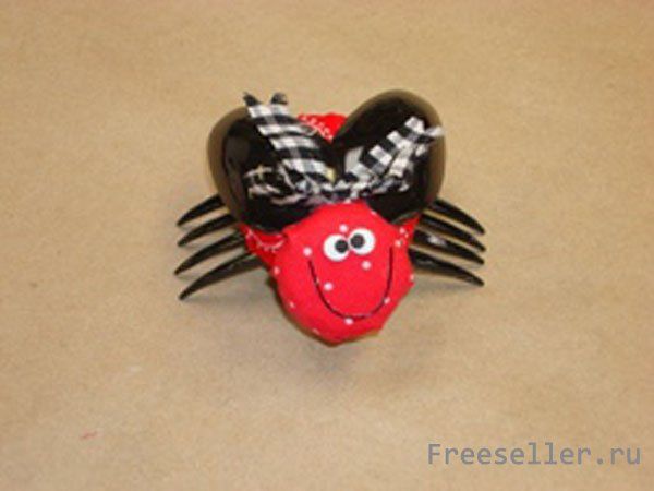 12) Приклейте обе основы вилки в «брюшку» тела божьей коровки. Постарайтесь приклеить ножки ровно, чтобы коровка могла устойчиво стоять и не шататься.
