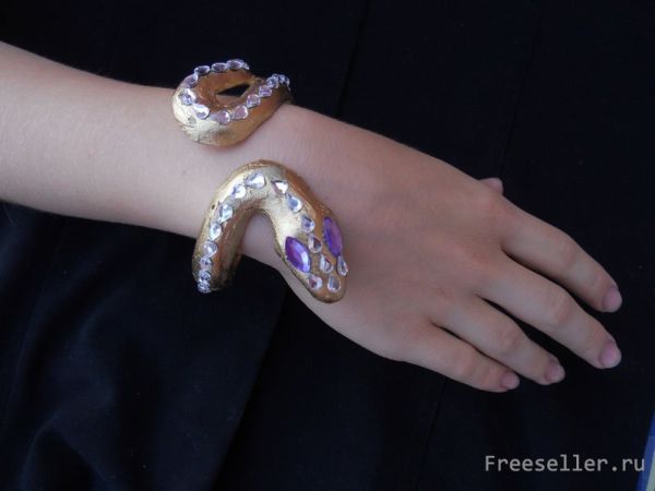 Самодельный браслет в виде змеи. Хотелось бы поделиться с читателями сайта: "Полезные самоделки" о том как можно сделать самодельный красивый браслет золотого цвета, украшенный камнями в виде змеи.