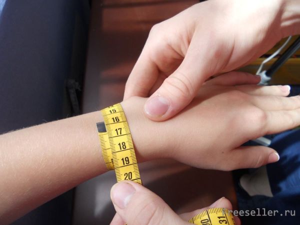 1) Первым делом с помощью мягкой рулетки измерьте толщину своего запястья.