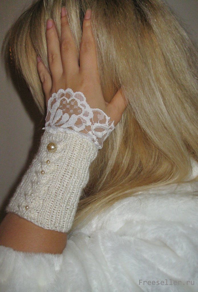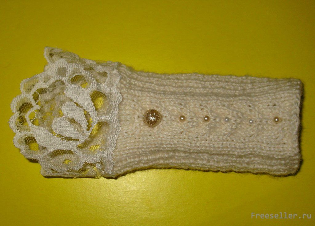 Некоторые невесты выбирают в качестве свадебного аксессуара длинные перчатки из атласа, а я предлагаю вам сделать вот такие самодельные вязаные напульсники, декорированные бисером и кружевом.