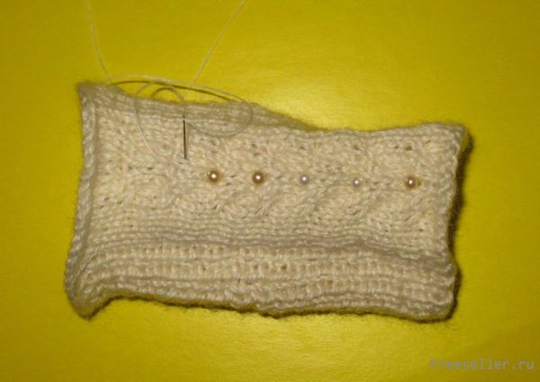 4) С помощью крючка прячем концы нитей во внутрь вязки, украшаем узор бисером;