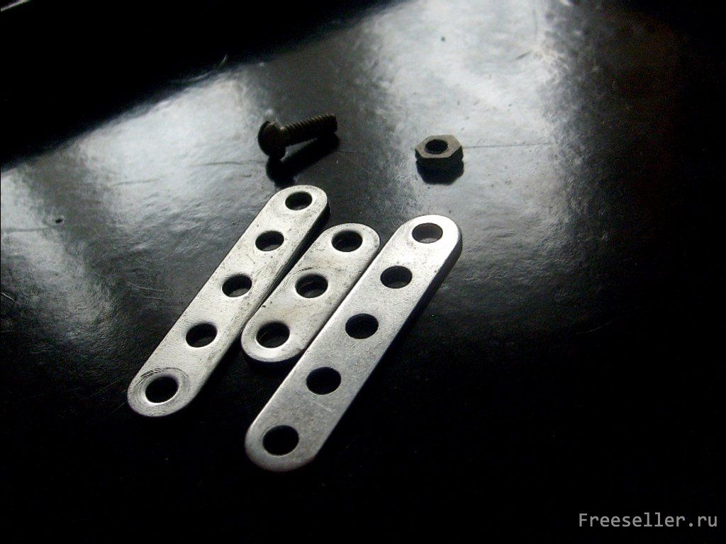 Тремя винтами и гайками скрепляем между собой две пластины одинаковой длины, внутрь которых вложена ещё одна - покороче.