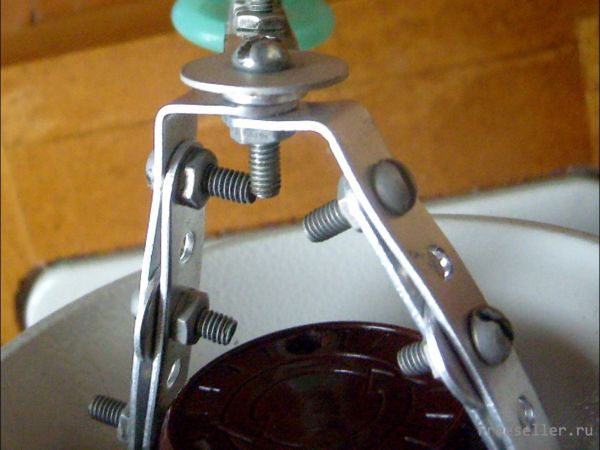 Мотор швейной машинки, как любой электроприбор, может рано или поздно выйти из строя. А самый незыблемый из законов природы - закон подлости - гласит, что нужные вещи ломаются именно тогда, когда они нам нужнее всего. Мы нашли решение проблемы, временно превратив машинку с ножным электрическим приводом в ручную механическую. Самодельную ручку мы соорудили ей из деталей детской игры-конструктора, выпущенной аж в 1978 году в городе Вязники (где он находится, не знаю, но огромное спасибо его жителям за такую замечательную "палочку-выручалочку")!