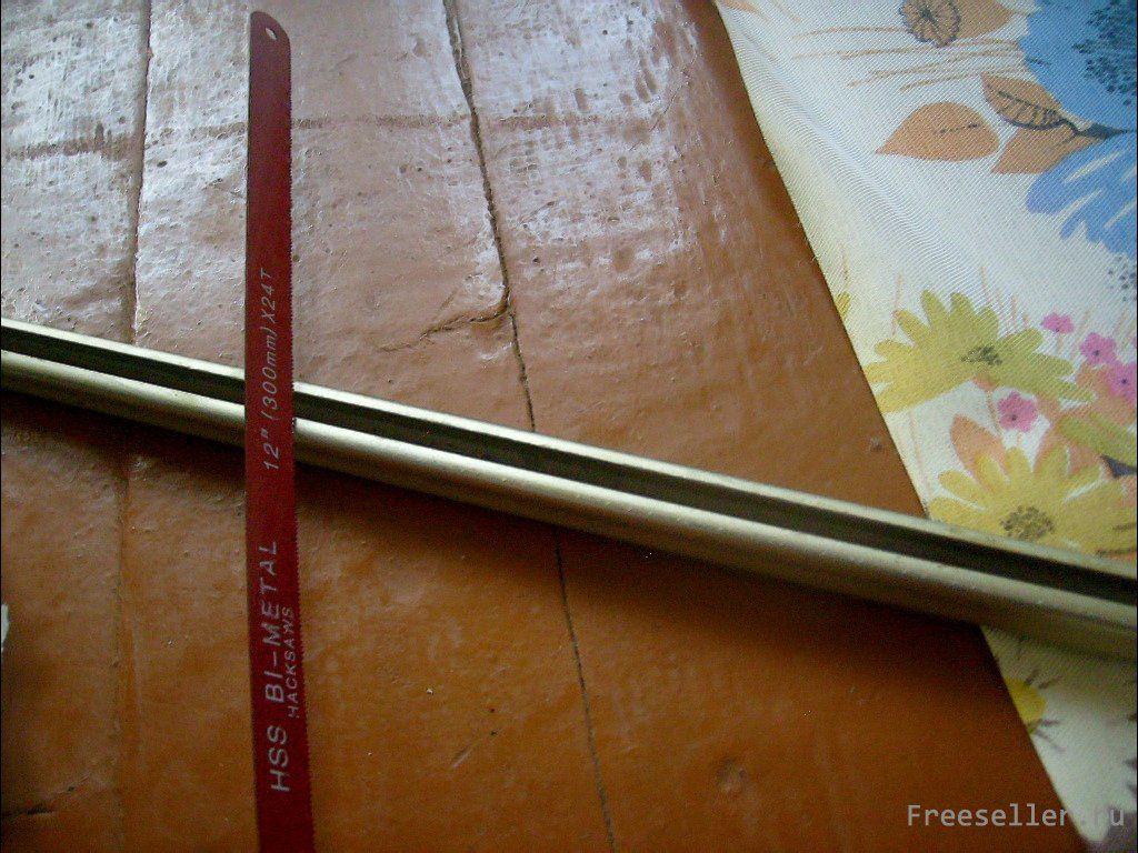 Отпиливаем ножовкой отрезок карниза нужной длины (по величине наружного края полки вашей вешалки).