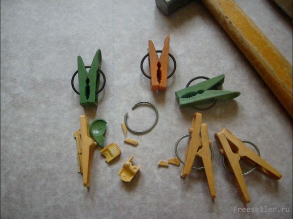 Правда, осколки прищепок могут быть очень острыми и разлетаться довольно далеко. Так что, работа требует осторожности - легко пораниться!