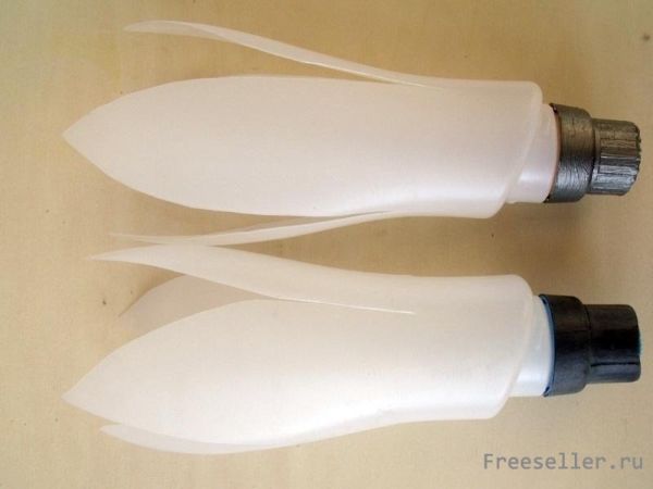 3) У вас образовалось четыре отдельных разрезанных края. Теперь им необходимо придать определённую форму. Для этого достаточно будет просто обрезать ножницами верхушки, придавая им тем самым чуть заострённую форму, которая была бы похожа на лепестки цветка.