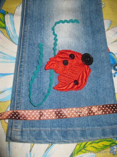Предлагаю вам один из вариантов такой аппликации на джинсы для девочки.