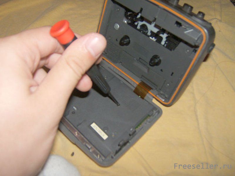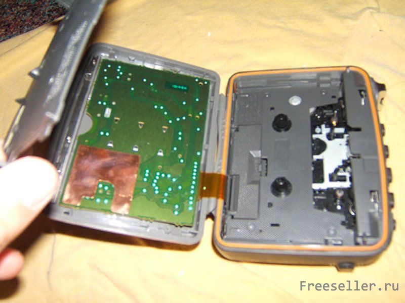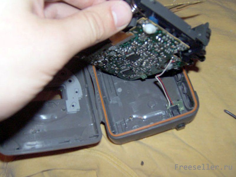 1) Разбираем корпус и демонтируем электронную и механическую часть плеера.