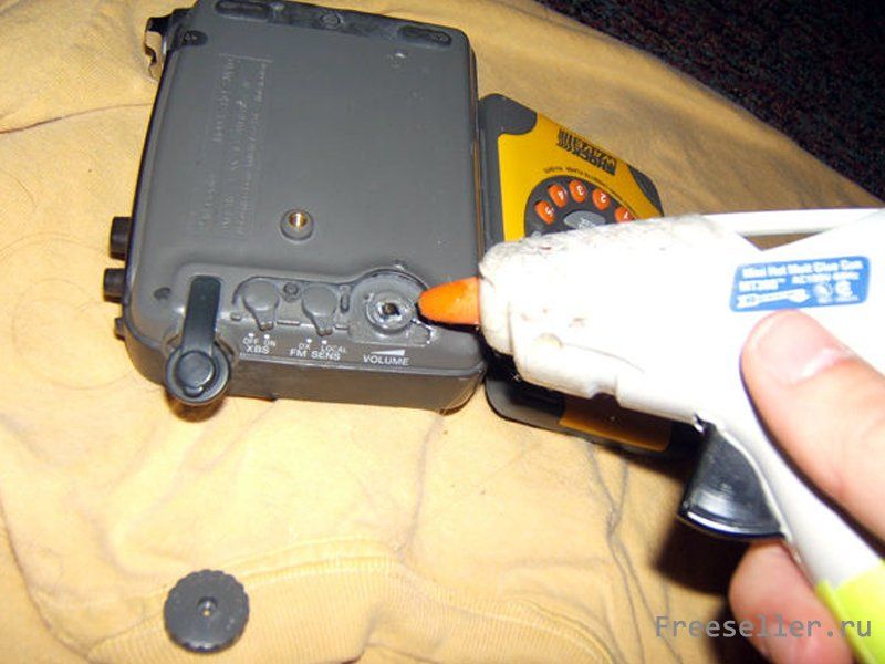 3) Теперь необходимо заклеить регулятор громкости, и извлечь все металлические детали из корпуса. Если металл удалить не удается, нужно обработать его клеем, чтобы не ржавело.