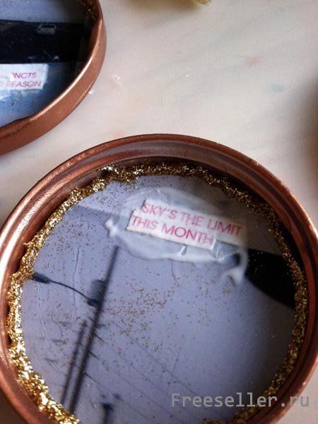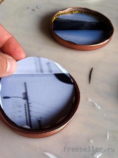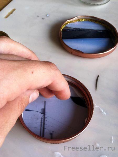 Дайте смоле высохнуть в течение 24 часов (не меньше!). для этого разместите крышки на плоской поверхности, где они будут находиться в полном спокойствии. Я бы не рекомендовал оставлять их снаружи. Всё по той причине, что на смолу может оседать пыль, листья и другой мусор. Лучше всего будет, если вы накроете крышки каким-нибудь чистым и прозрачным пластиковым контейнером. После того, как смола высохнет, приклейте на крышку (к её поверхности) магниты. Как только клей высохнет - всё будет готово.