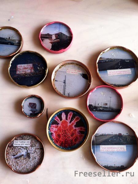 Всего с помощью нескольких крышек от банок и разнообразных рисунков, фотографий и других картинок вы сможете самостоятельно создать множество магнитиков для холодильника, или другой железной мебели. Самое интересное то, что у вас будет возможность поиграть и с дизайном для этих самодельных магнитов.