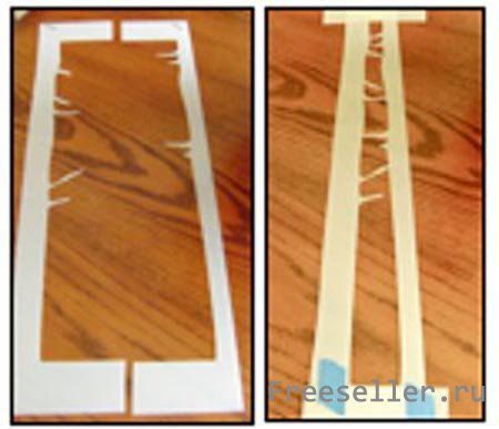 2) Если вы не будете использовать крупный и широкий трафарет для ствола дерева, то его можно разрезать пополам по вертикали для создания размера, который будет подходить для вашего проекта. Более того, разрезанные части вы можете склеить под углом, чтобы получилось некое подобие конуса. Таким образом, ствол дерева будет выглядеть более правдоподобно.